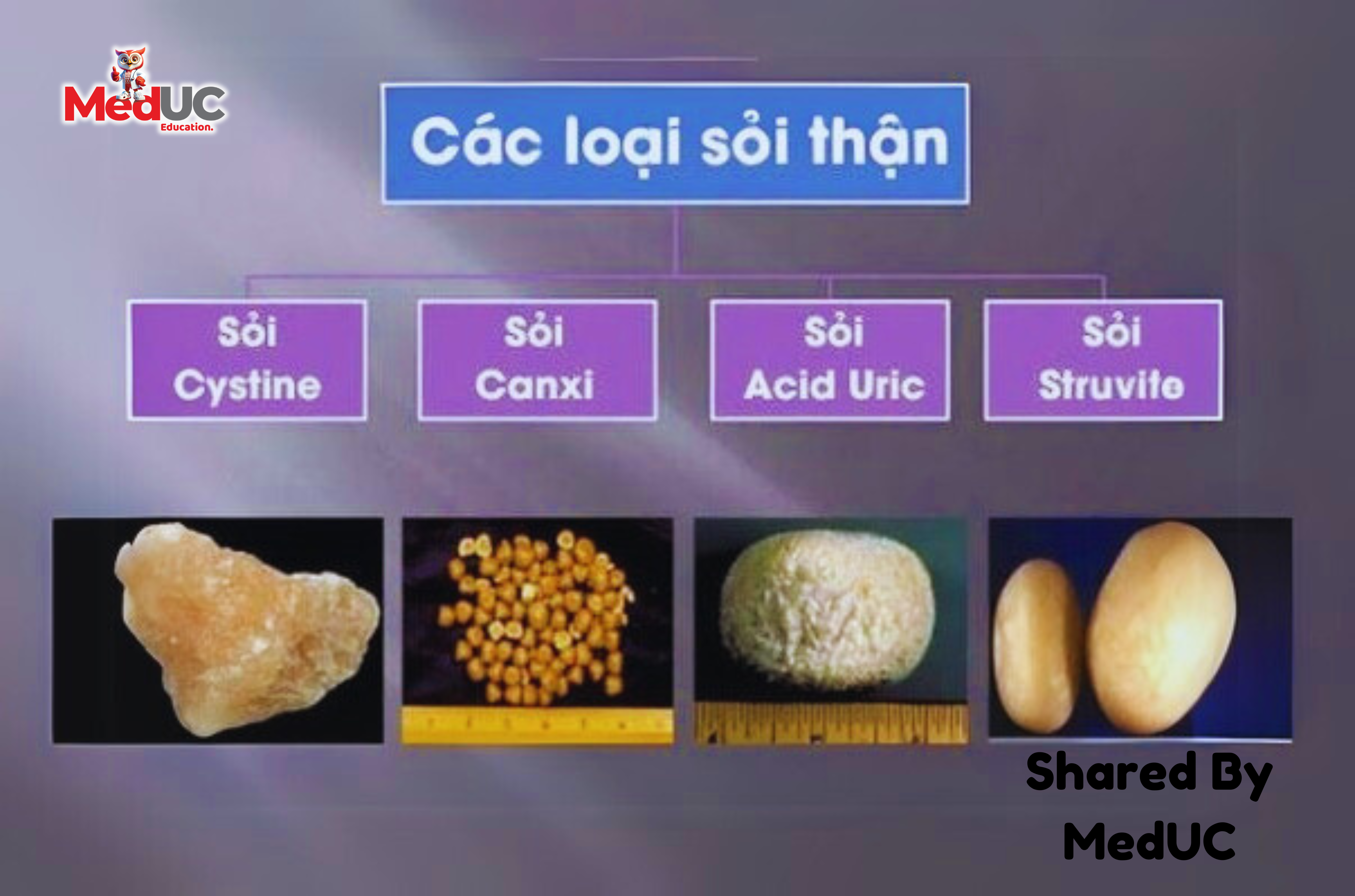 Sỏi calci oxalat có nhân acid uric.