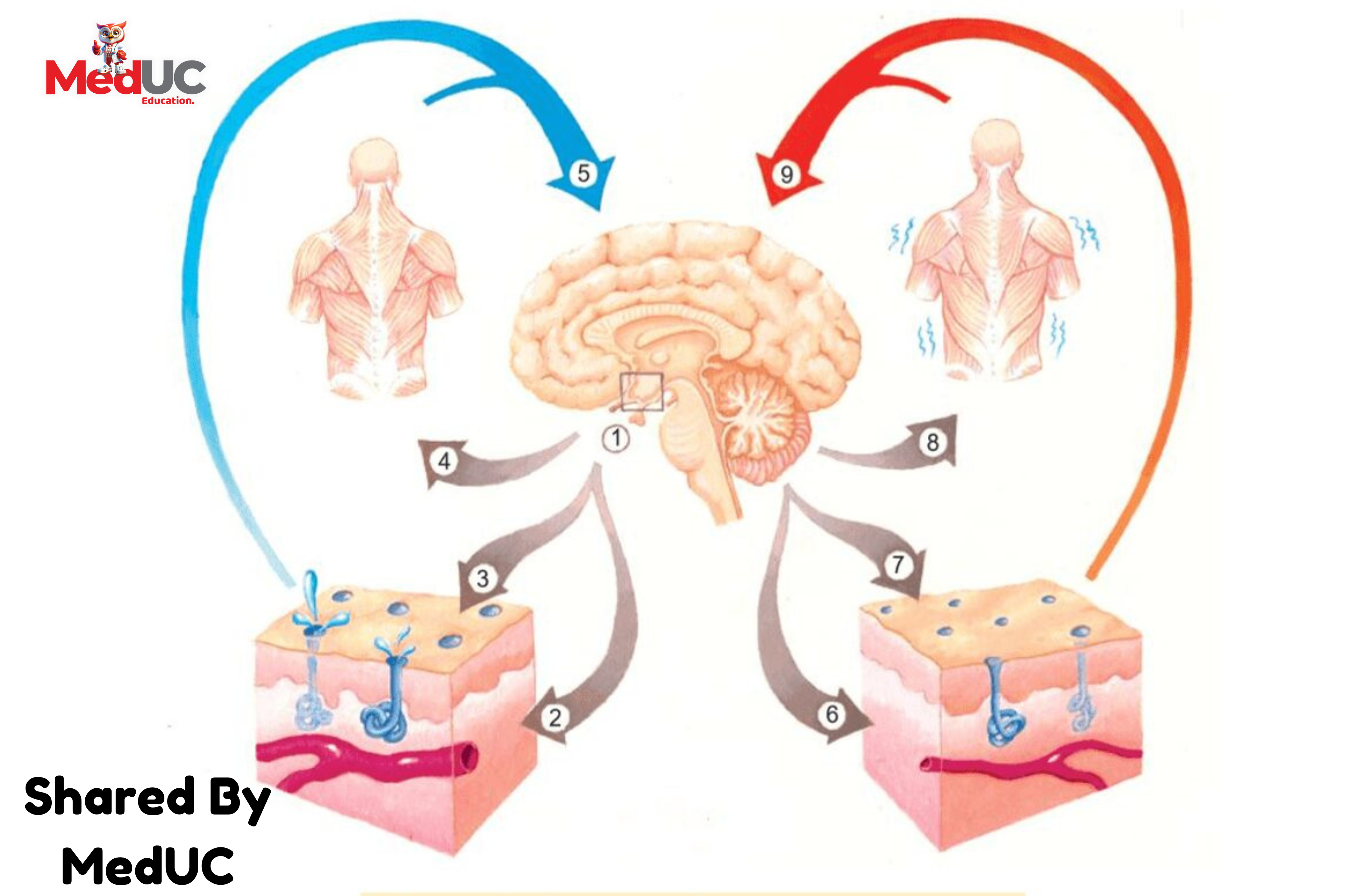 • Receptor cảm nhận nóng và lạnh ở da: Giúp gửi tín hiệu về vùng dưới đồi khi nhiệt độ bên ngoài thay đổi.