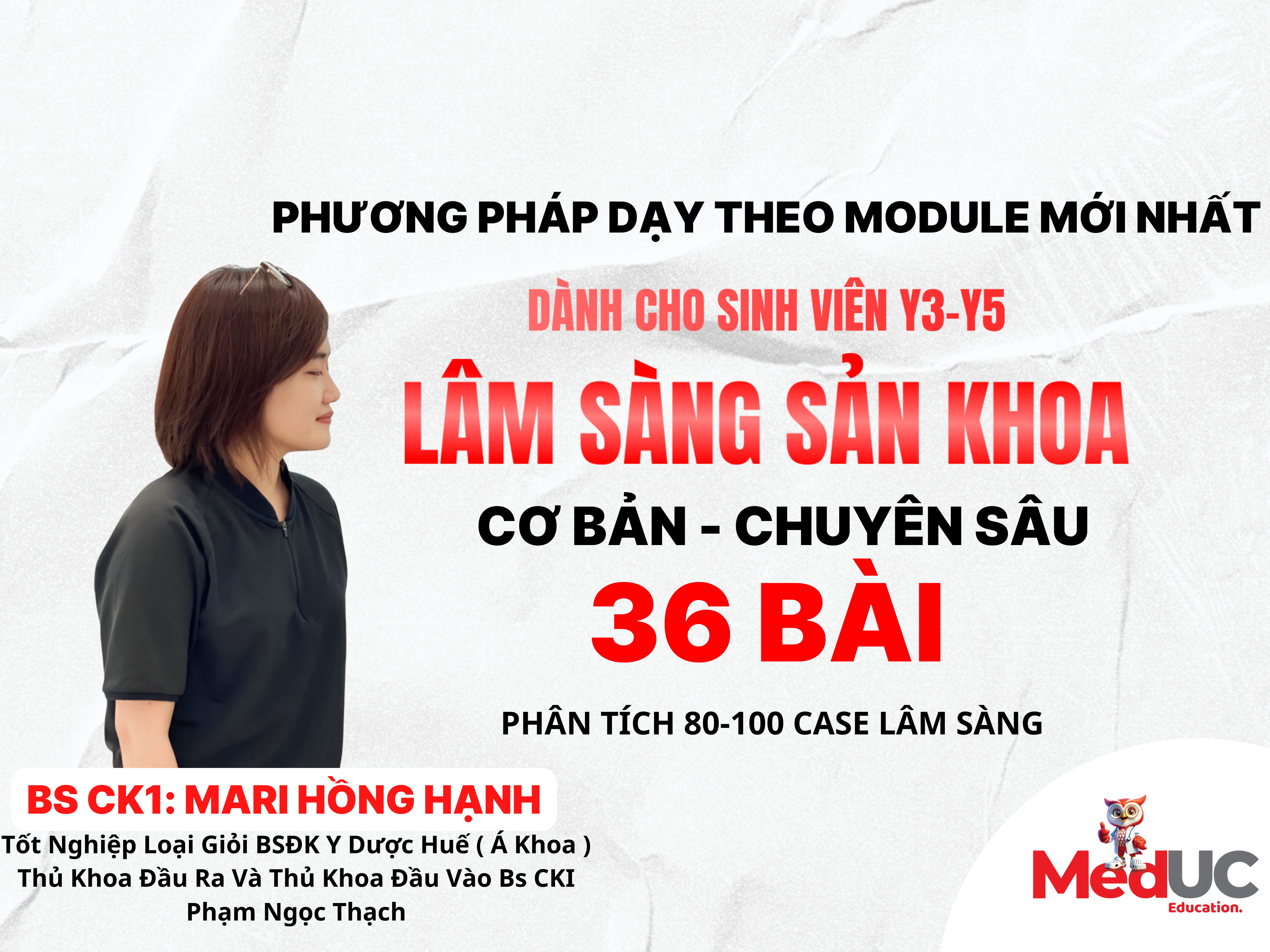 Khóa học Lâm Sàng Sản khoa Chuyên sâu tại MedUC được thiết kế dành cho sinh viên Y3 trở lên hoặc người cần hệ thống lại kiến thức trước khi thi và đi bệnh viện. Khóa học gồm 36 buổi chọn lọc, giảng dạy bởi bác sĩ CKI Hồng Hạnh giúp học viên học đúng trọng tâm, nắm chắc quy trình và dễ dàng áp dụng khi đi ca trực.